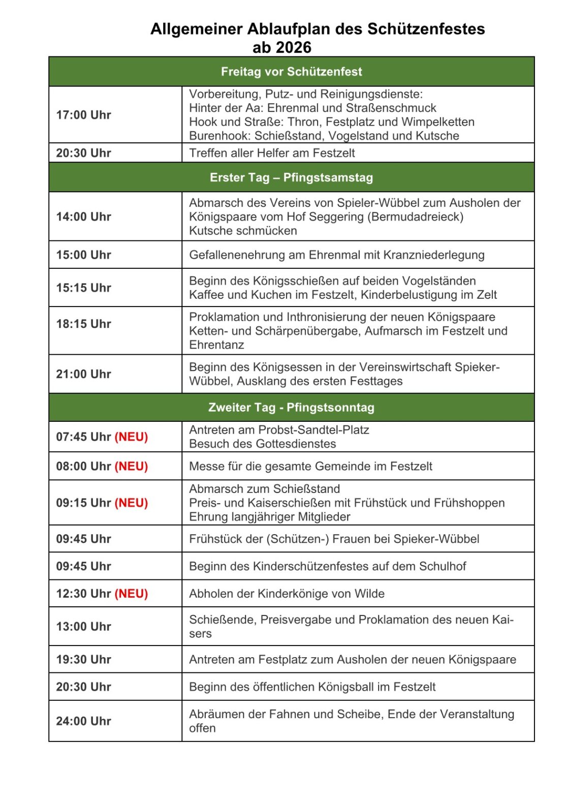 Sollte es Änderungen im Ablauf des Schützenfestes geben, werden diese frühzeitig bekannt gegeben.